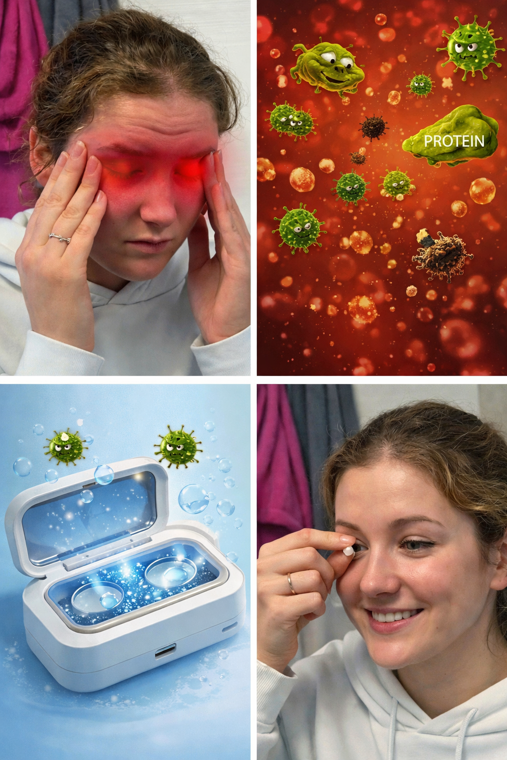 Mikro titreşimlerle kiri ve mikropları temizler, lenslere zarar vermez ve gün boyu konfor sağlar.